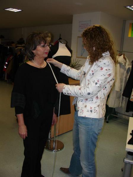 2. Danach wird die Kundin ausgemessen, damit ich den Grundschnitt und später den Feinschnitt erstellen kann.