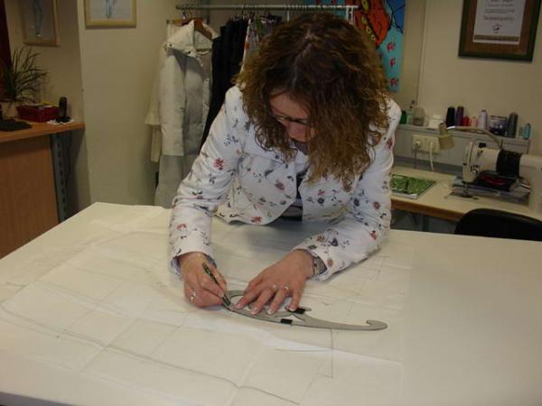3. Nun mache ich den Grundschnitt.Dann nähe ich ein Probeteil, damit die Kundin schon einmal einen Eindruck von dem Kleidungsstück bekommt und eventuelle Änderungen noch vorgenommen werden können.